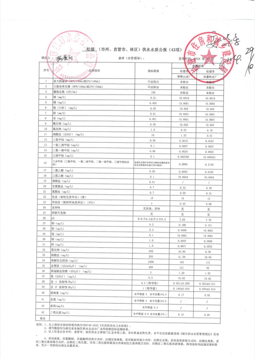 2024年10月出厂水全分析报告