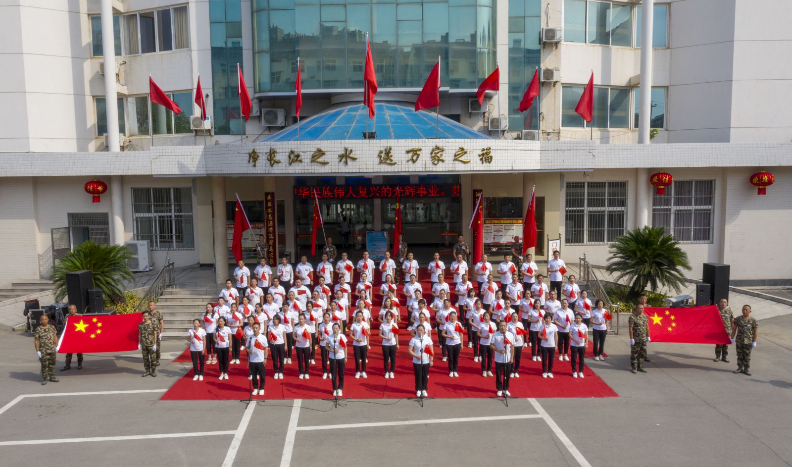 供水新闻员工大合唱 献礼庆国庆金风送爽,丹桂飘香。9月26日上午,市自来水公司红旗招展,歌声灵动,一派喜庆的气氛。市自来水公司全体干部职工欢聚一堂,伴随激昂的旋律引吭高歌,庆祝祖国七十华诞。
