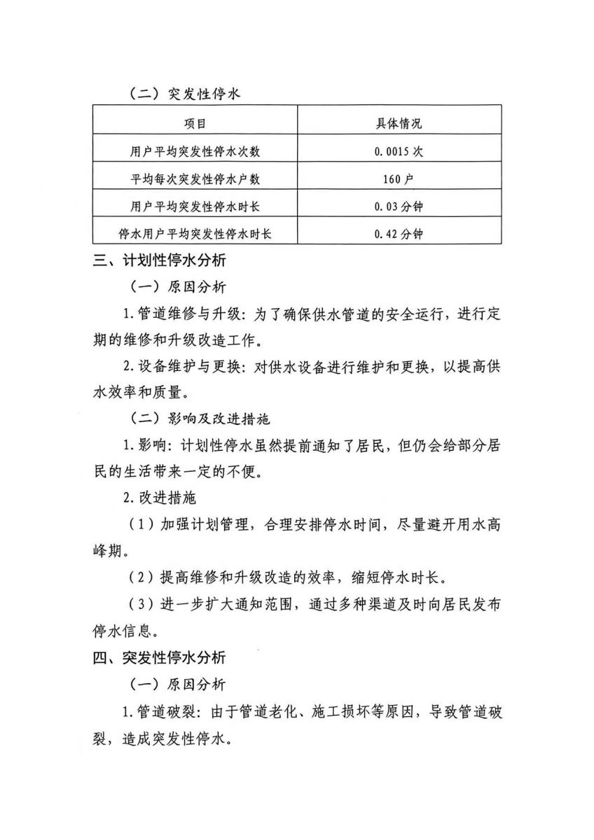 松滋市城市水务有限公司供水可靠性及服务质量报告 (2024年9月)